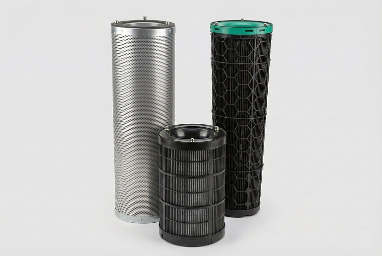 Filtres cartouches cylindriques à 360°, remplis de charbon actif, d’alumine activée ou de médias moléculaires hybrides, offrant une faible perte de charge et une longue durée de vie pour l’adsorption efficace des gaz, odeurs et composés chimiques dans de nombreuses applications industrielles et tertiaires.