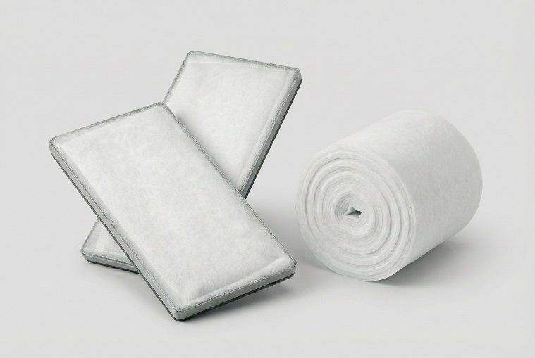 Découpes et rouleaux de média utilisés comme préfiltres dans les unités de traitement d’air et comme filtres principaux dans les cabines de peinture ou applications similaires.