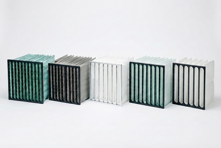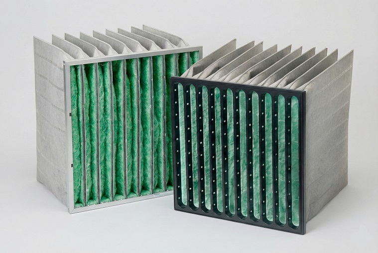 Filtres à poches pour filtration finale de l’air en CVC industriel, commercial et résidentiel, utilisés également comme préfiltres dans les systèmes HEPA.
